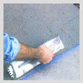 2. ใช้เกรียงหวี ฉาบปูนซิเมนต์ดำ ผสมทราบละเอียด หรือปูนซิเมนต์ขาว