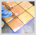 1:3 (ทราบ:ซิเมนต์ขาว(ดำ)) การเช็ดยาแนว หลังจากการปูกระเบื้องดินเผ